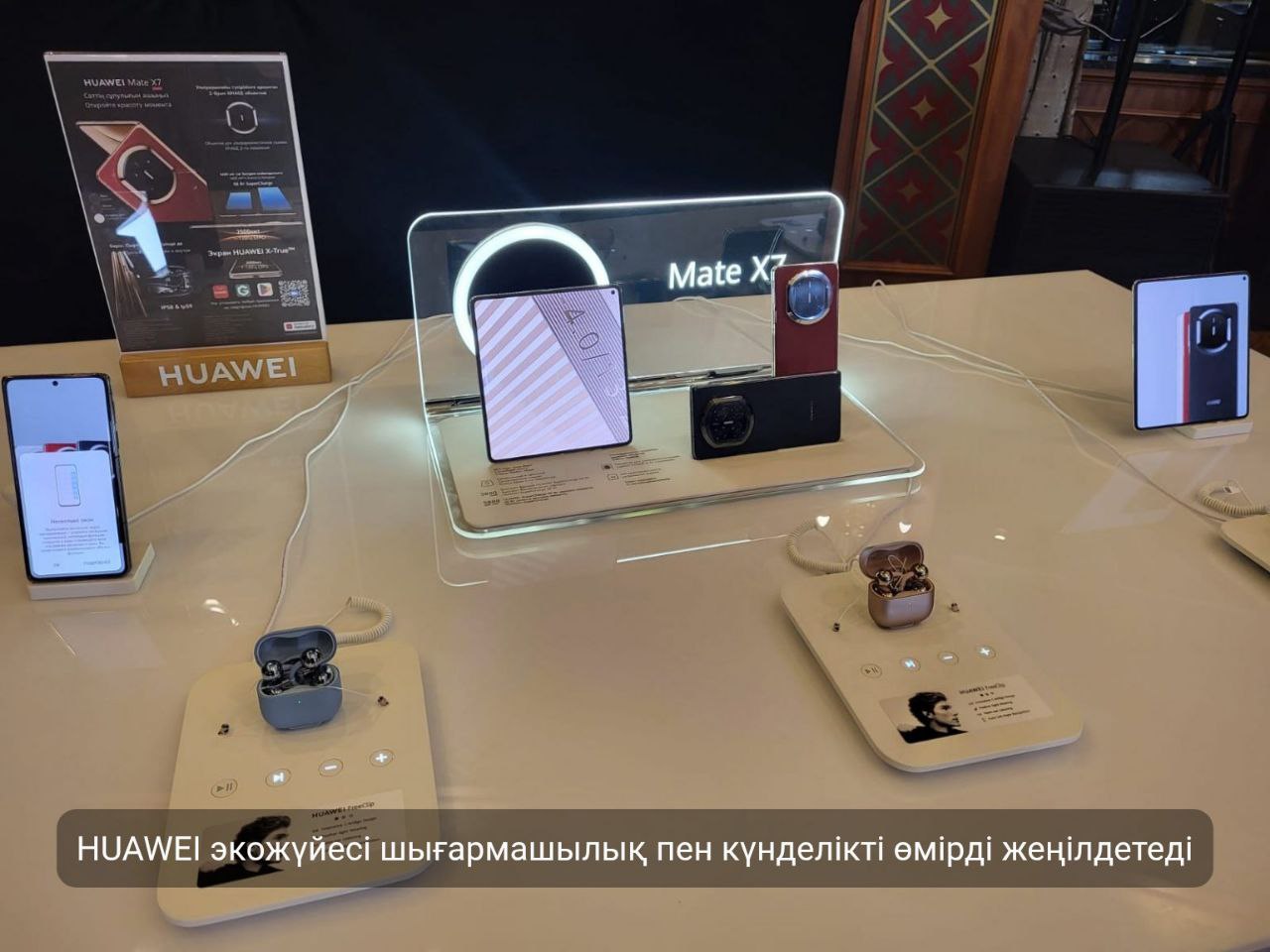 Ұсынылған өнімдер қатарында HUAWEI Mate X7 жиналмалы смартфоны, HUAWEI MatePad 11,5″S планшеті және HUAWEI FreeClip 2 құлаққаптары бар. Әр құрылғы жеке функционалдық шешімдерге негізделе отырып, біртұтас экожүйе аясында өзара үйлесім тапқан.