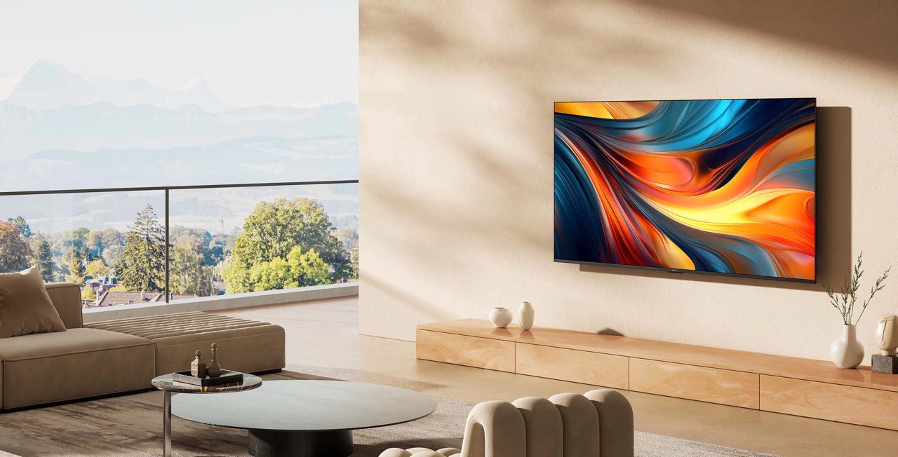 Внешне Xiaomi TV A Pro 2026 выглядит очень стильно и актуально для современного интерьера. Экран очень тонкий и прекрасно смотрится как при установке на горизонтальную поверхность, так и при креплении к стене с помощью кронштейна. Обратите внимание на минималистичные рамки (всего 3 мм) – изображение просто висит перед вами. Нижняя рамка чуть шире, но это не портит впечатления во время просмотра.